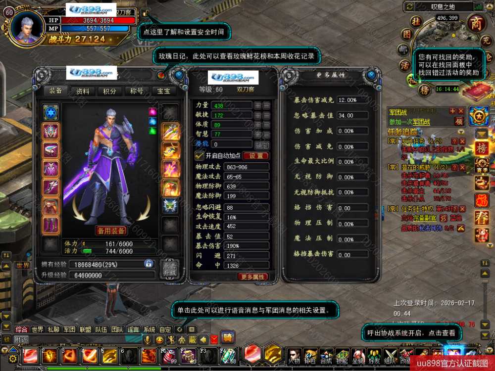 【无法绑定支付宝 双刀客 角色等级60 男 1号1角色 】特权任务链跑到14环,VIP青铜勋章没用