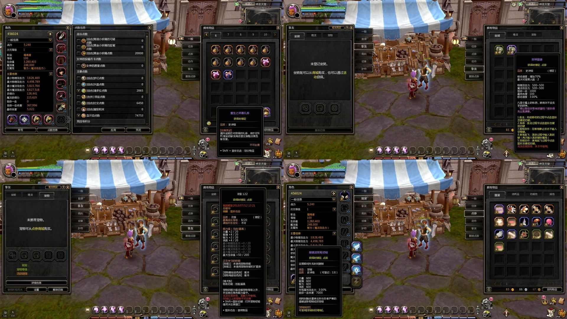 财神坐骑160斑斓潘多拉250左右水晶潘多拉可开全套*级S翅膀印花尾巴精灵大翅膀S坐骑职业转换券8+可转职8次以上职业仓库背包全开大量复活999+挑战任何副本难度精灵蓝鸟黄鸟希望之花职业转换券8+转化任意职业大量潘点水晶潘多拉透视放大镜1000+坐骑应有尽有以上全部为大量12年老号底子号更多惊喜等待发现以截图为准1服-3服互通