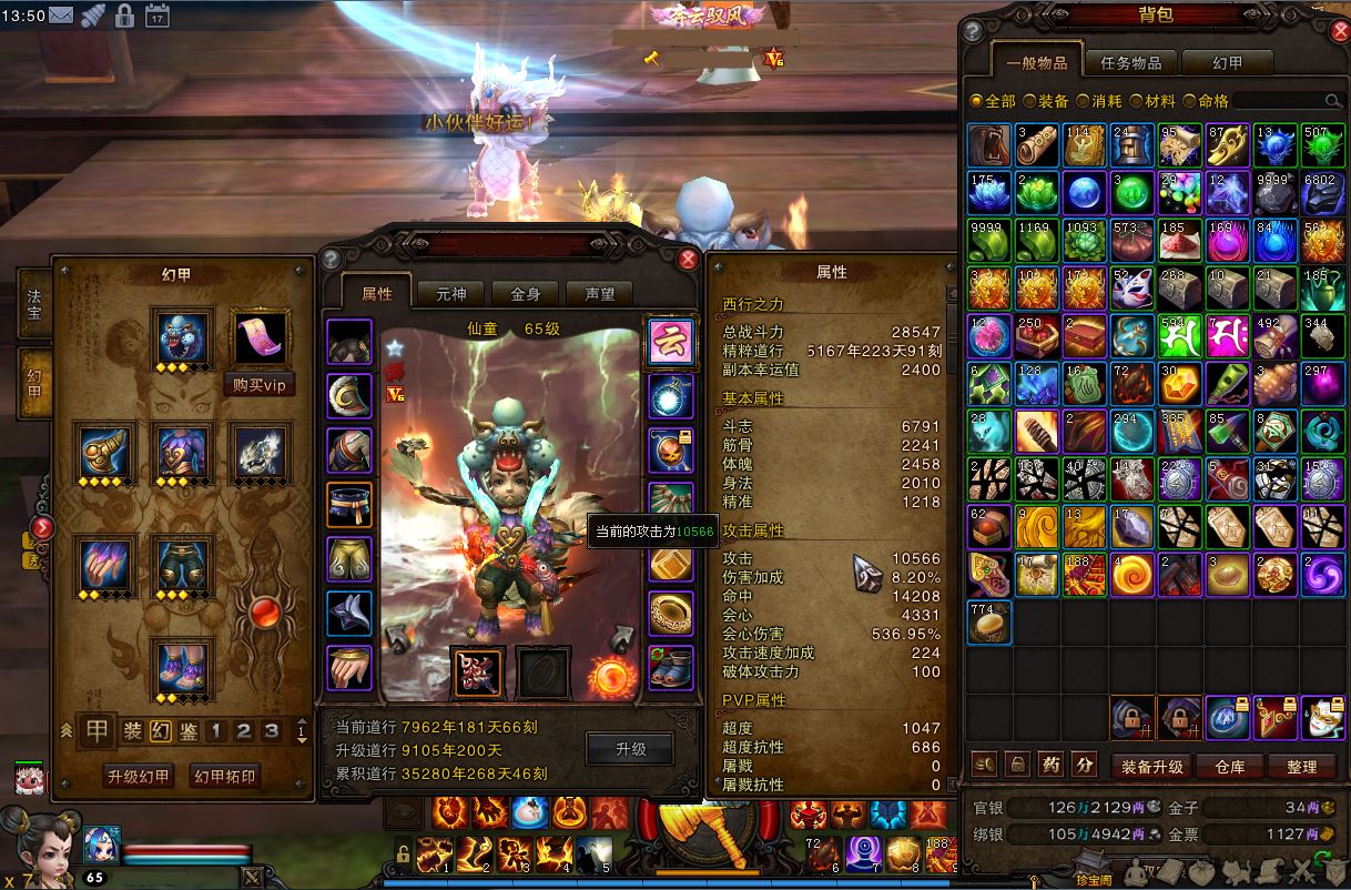 【仙童 角色等级65 QQ等级11~20级 无QQ好友 】大背景佑吉符65仙童万攻千1火提高四幻虚武器腰白骨左耳四不像6D魔化斗斗龙带小龙女玄雀鬼域幻甲内丹两金冥印改名