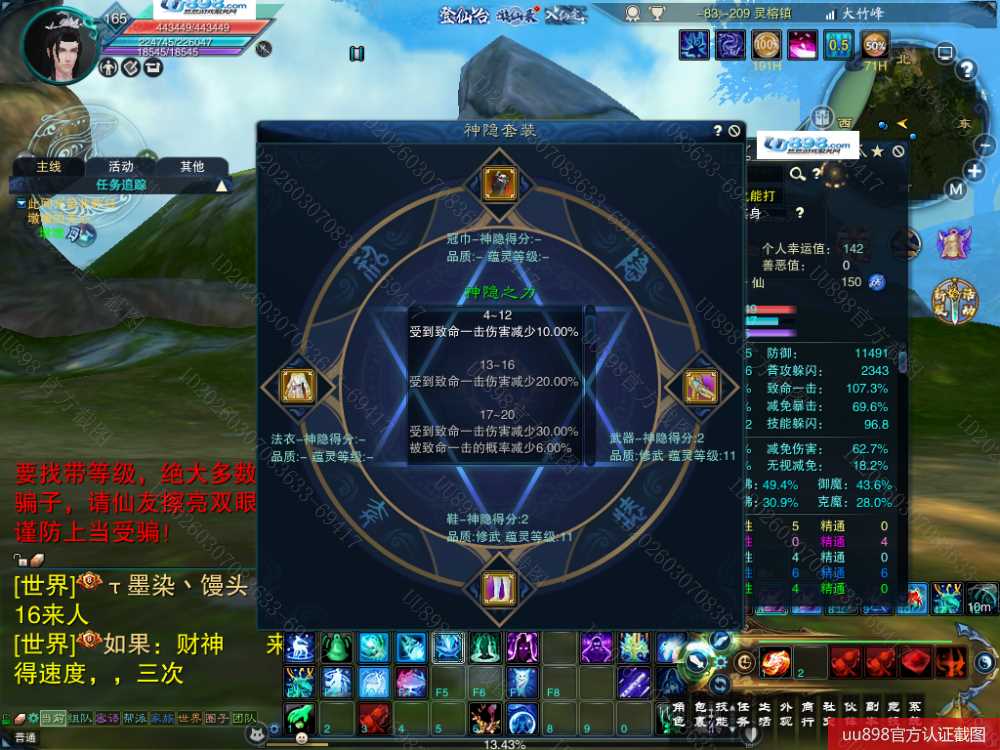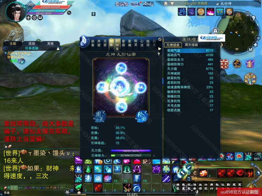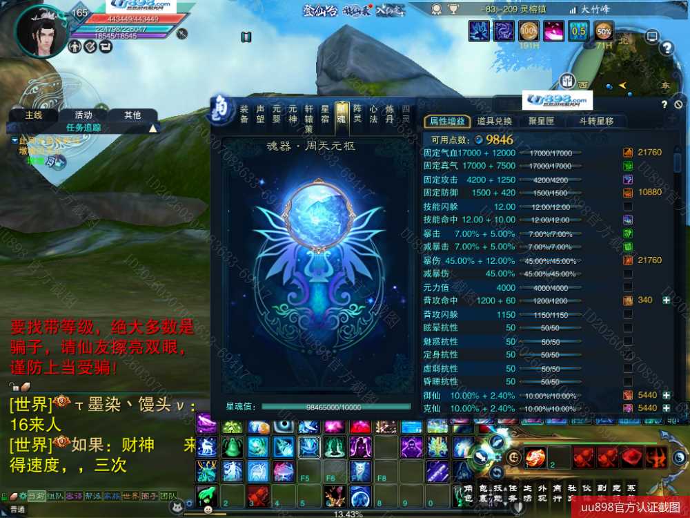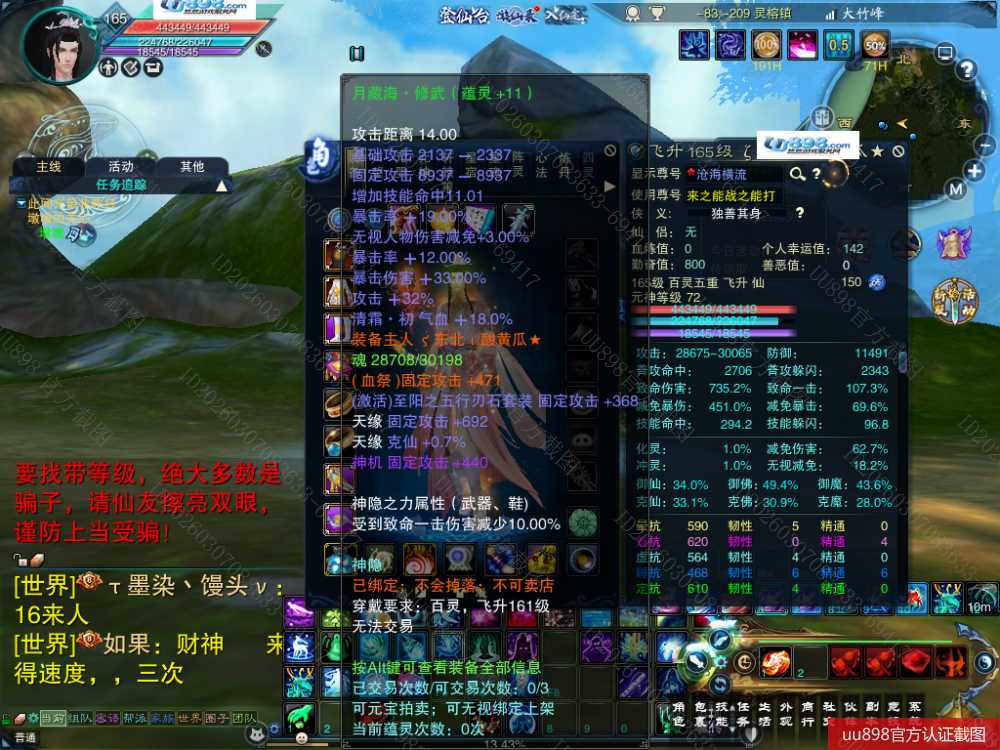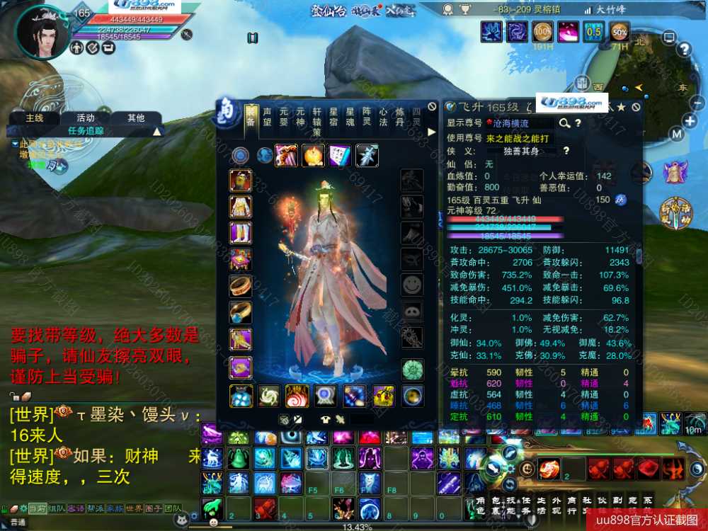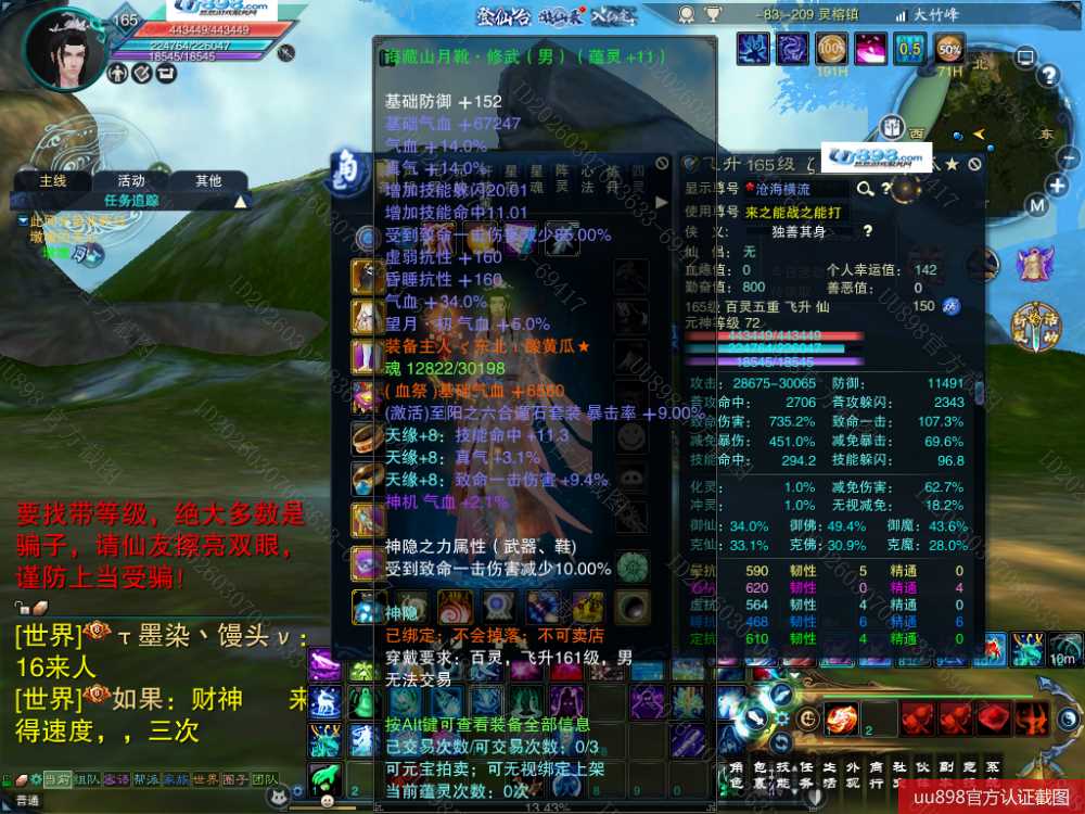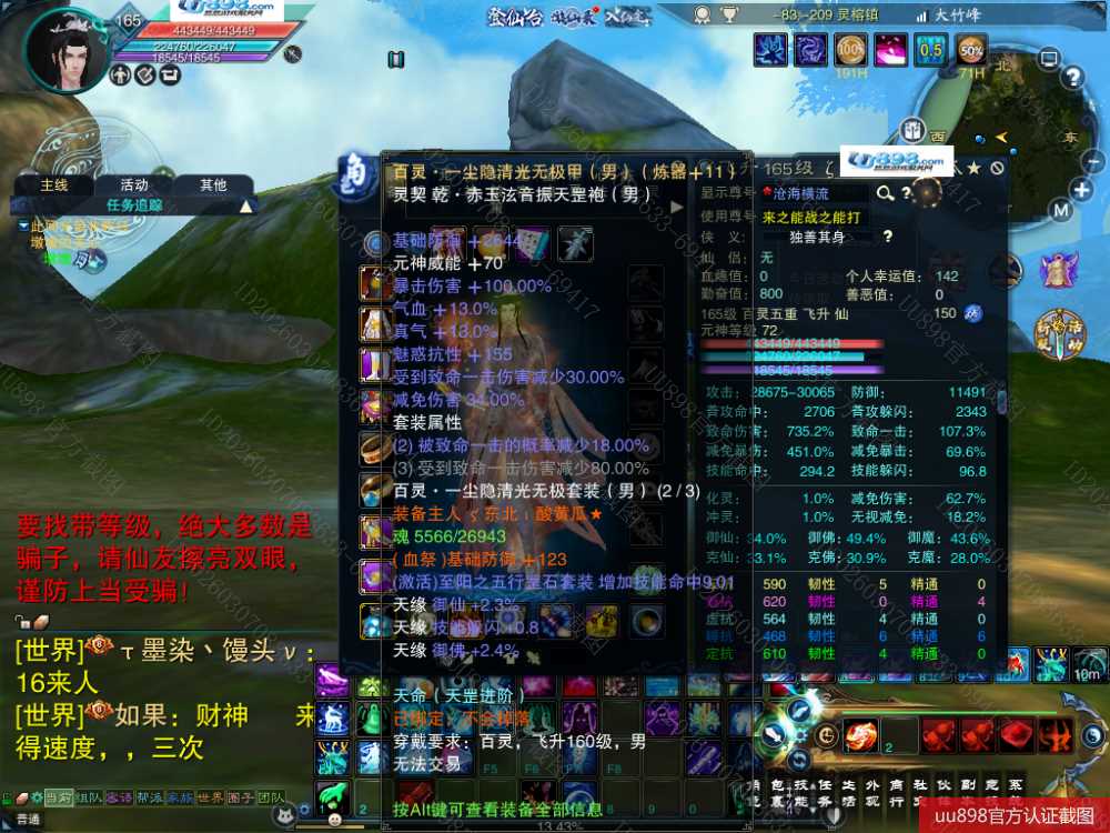 【百灵 五重修真 男 角色等级165 仙 苍祇 】7阵都12阶,3件11,10的头和腰带,附件灌凤羽7张了,随便小号状态能单刷T12,16星宝宝,,超值号甩一天手慢无