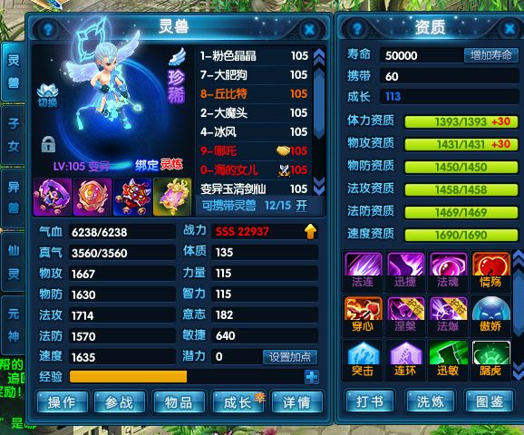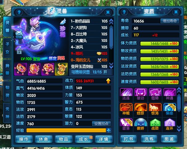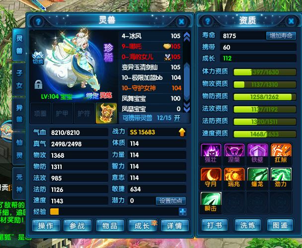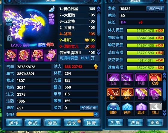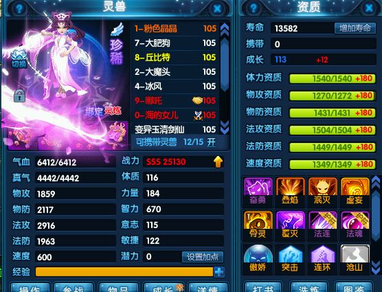 魔将、猎杀、洛林、冰凤凰、丘比特、哪吒、祥瑞等成品珍兽,仓库有很多材料,用完能更上一层楼。能满足日常任务和活动。脱坑不玩了,专心带娃