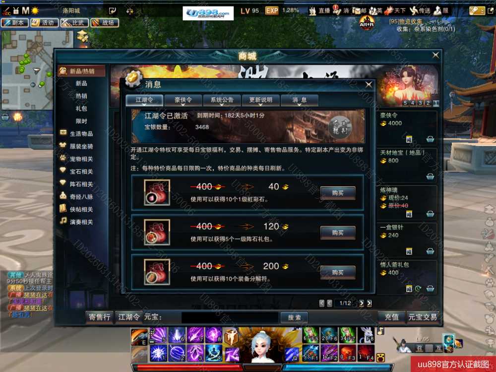 【帐号出售 神霄 男 角色等级95 江湖令剩余天数182 】金书土神霄