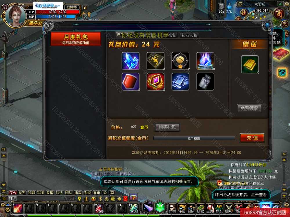 • 游戏区服: 诺亚传说怀旧版/怀旧大区/天王星