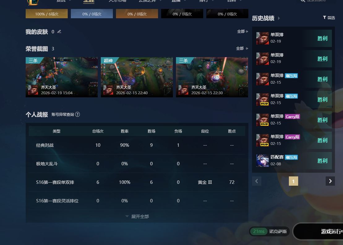 【英雄数量20 皮肤数量0 荣耀黄金III 魔法引擎数量0 2.5万-3万 召唤师等级30 】S16黄金3可换绑改密小号永不找回