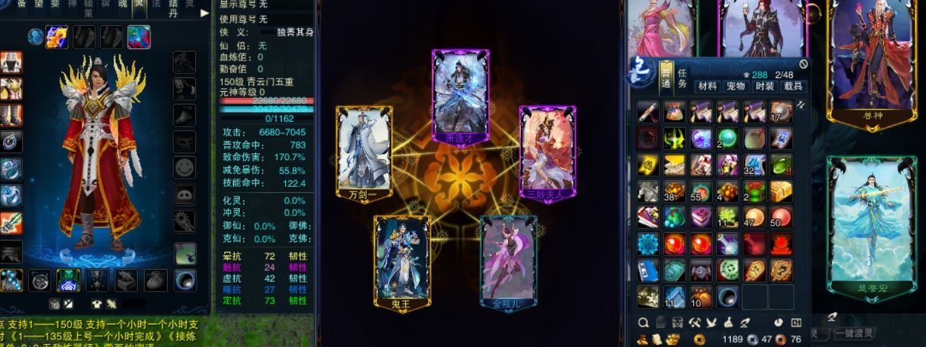 【三个月内,找回包赔】【青云 五重修真 女 角色等级150 未飞升 人族 】5阵细节满级青云,高攻击,高命中,群秒中州!拿去带人一单回本,未绑定身份证!手机号!绝对安全可靠!