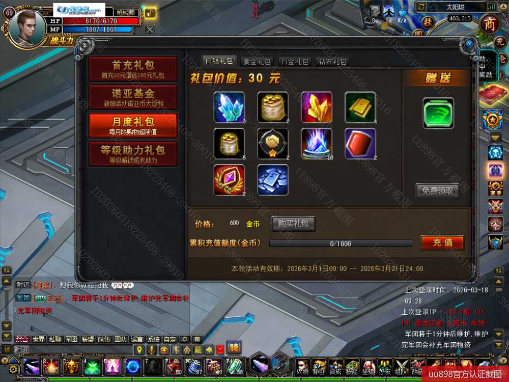• 游戏区服: 诺亚传说/双线区/马年专服