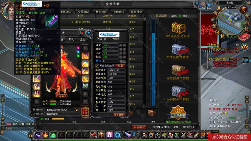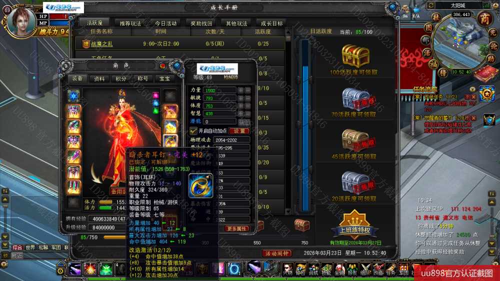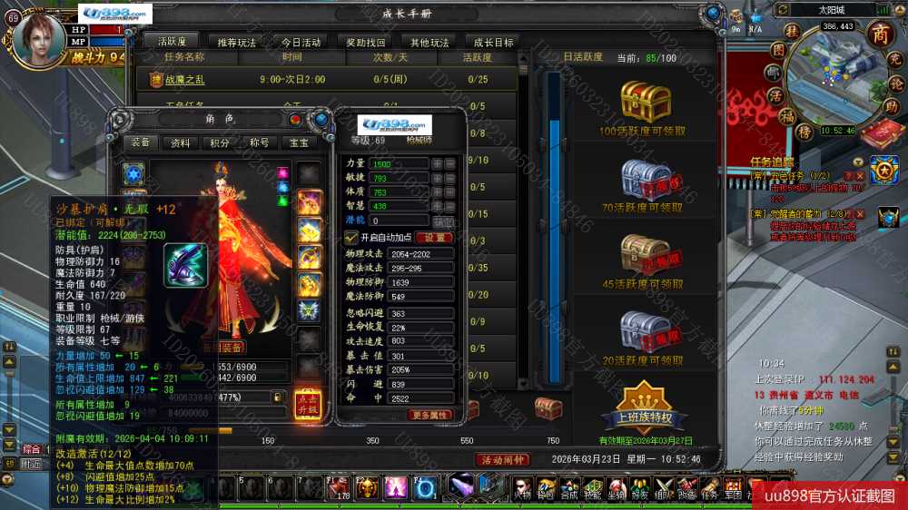 【终身找回包赔】【已绑定支付宝 枪械师 角色等级69 女 】秒升73级9.4W战力带11劳