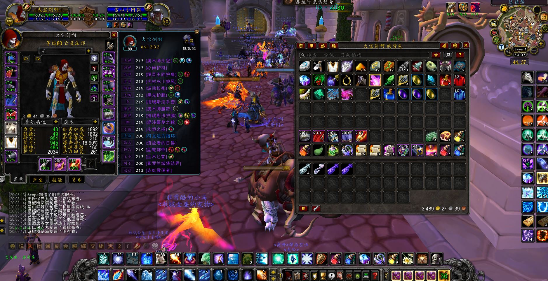 亡灵法师213装等背包里有3000多金法师好操作输出高到手直接进P3团本吃排骨自己心血号无任何封号不良记录!买到就是赚到。