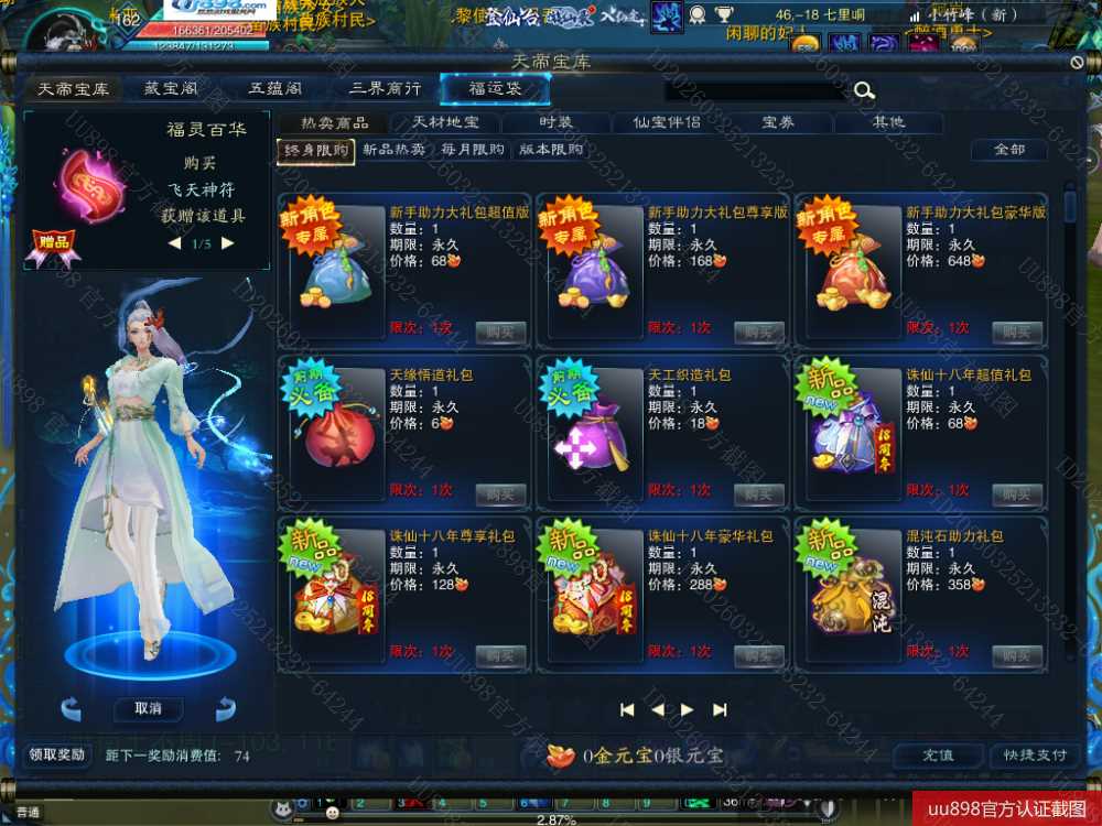 【百灵 五重修真 女 角色等级162 仙 苍祇 】7阵都12阶,修武9武器,天罡10的衣服,能辅助能主C,超级厉害,超值号