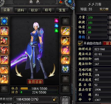 【无法绑定支付宝 双刀客 角色等级55 女 】2W5双刀【8件加8】差【2】件加八套带金币150装备高输出职业一无绑定。