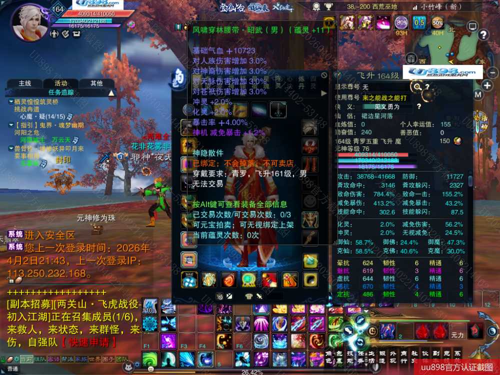【青罗 五重修真 男 角色等级164 魔 天脉 】三礼包,差不多四昭武青萝,拿去打副本挣钱去