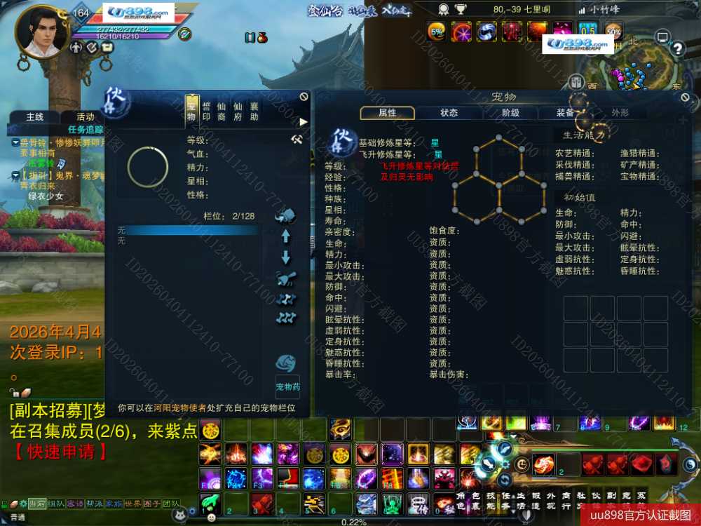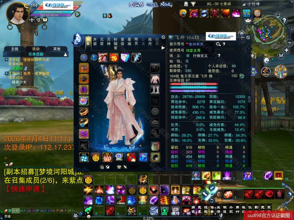 【鬼王 五重修真 男 角色等级164 佛 人族 】7阵基本都12阶,11修武武器,11衣服,11帽子,10鞋子,T12的怪只掉几千的血,超级大肉,现在带本超赚,还能抽马年