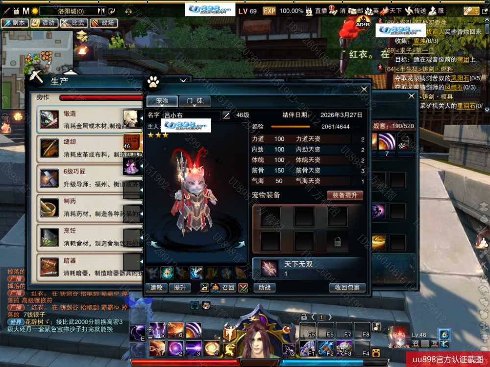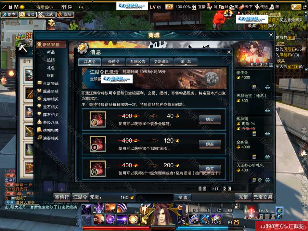 【帐号出售 日月 男 角色等级69 江湖令剩余天数19 】右边332战力前1000