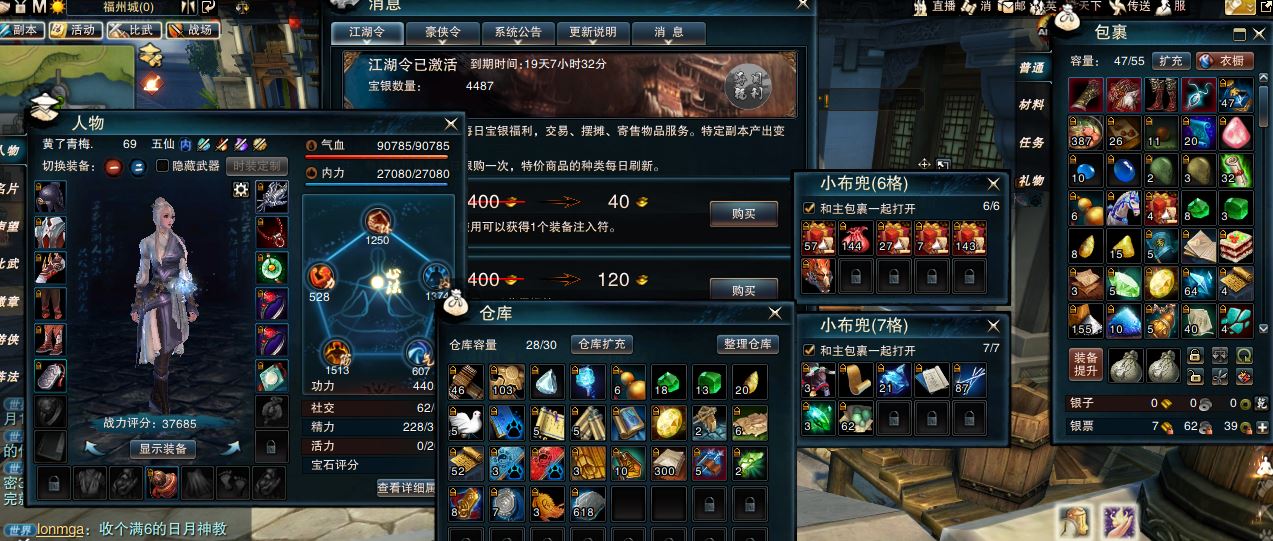 【帐号出售 五仙 女 角色等级69 江湖令剩余天数19 】就这样吧等级号开了江湖令