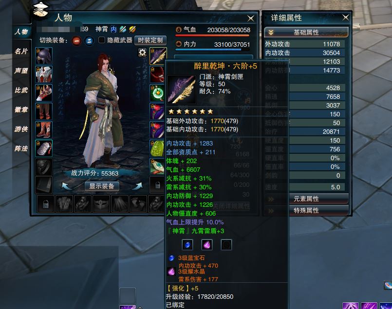【帐号出售 神霄 男 角色等级69 江湖令剩余天数18 】宝石是33,黄金武器,角色属性如图