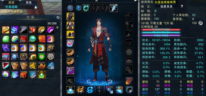 【万毒 五重修真 男 角色等级161 仙 神裔 】161万毒
