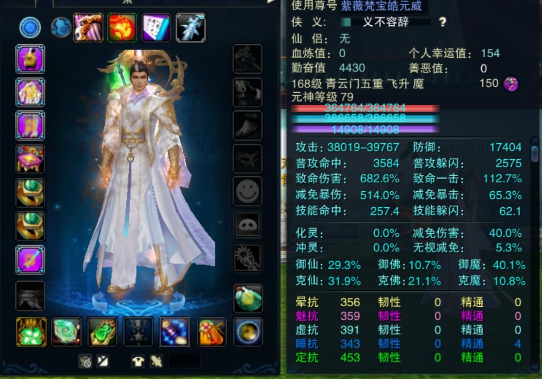 【三个月内,找回包赔】【青云 五重修真 男 角色等级168 魔 人族 】889元宝,昭武,武器衣服帽子鞋子+11!