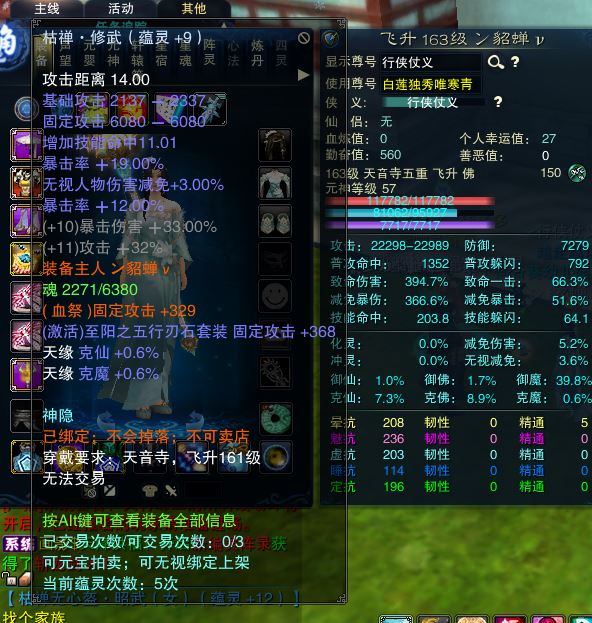 【三个月内,找回包赔】【天音 五重修真 女 角色等级163 佛 人族 】副本天音带50昭武碎片贱卖